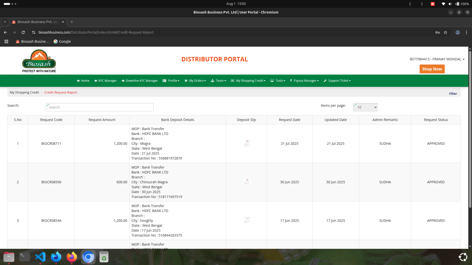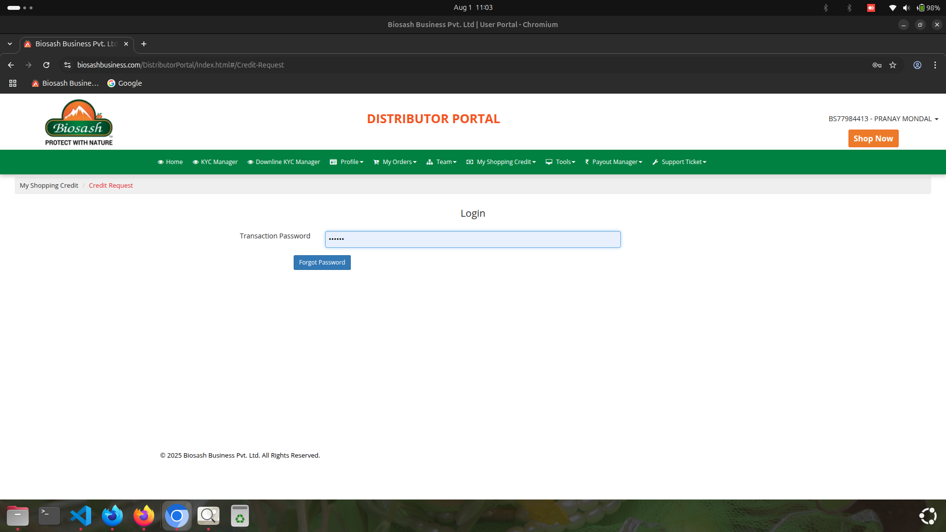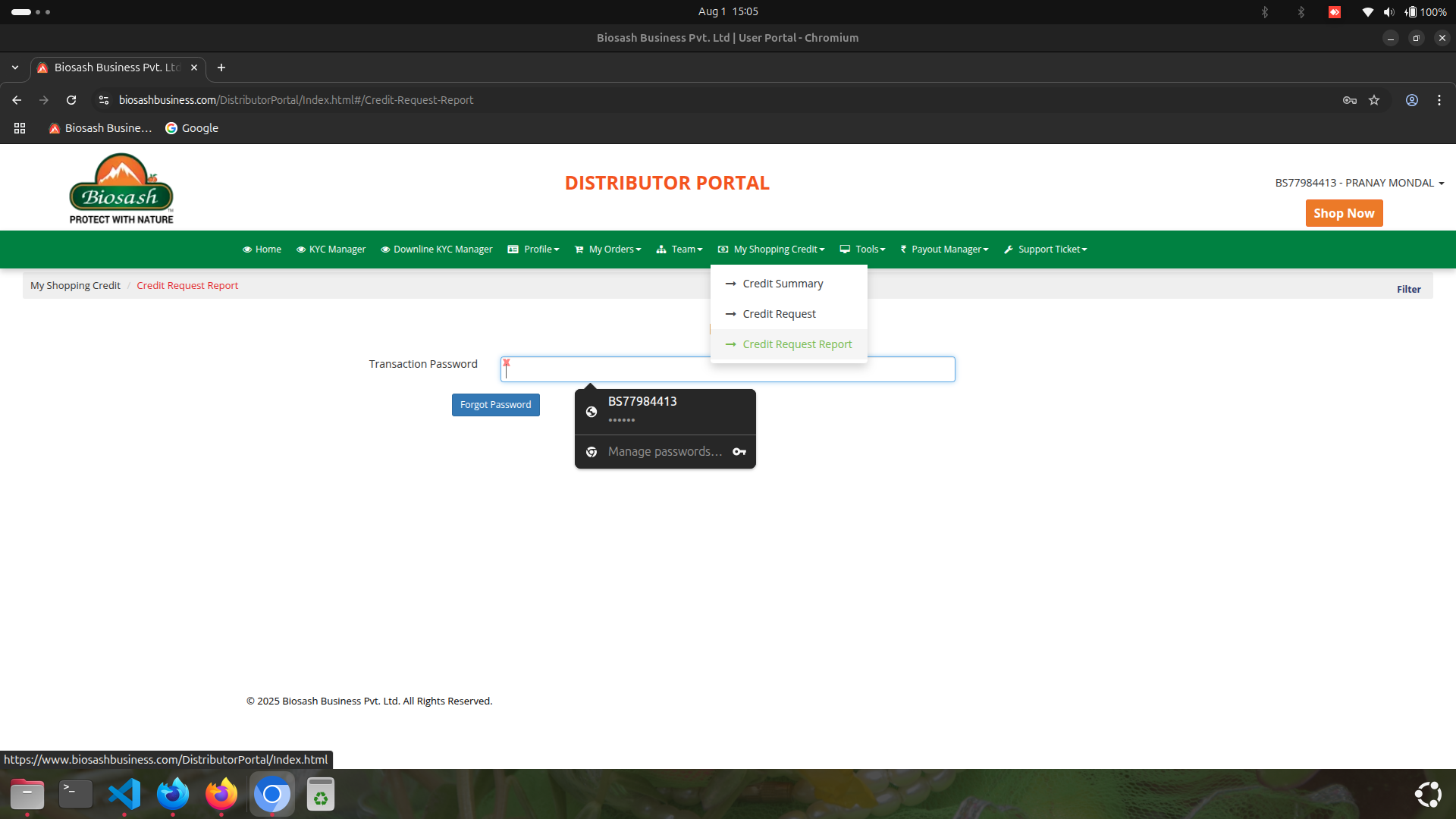 Submitting করার পর, আপনি Credit Request Status পরীক্ষা করুন। logging করার পর, "My Shopping Credit" এ যান। তারপর, "Credit Request Report" এ ক্লিক করুন। Transaction Password লিখুন এবং প্রবেশ করুন।