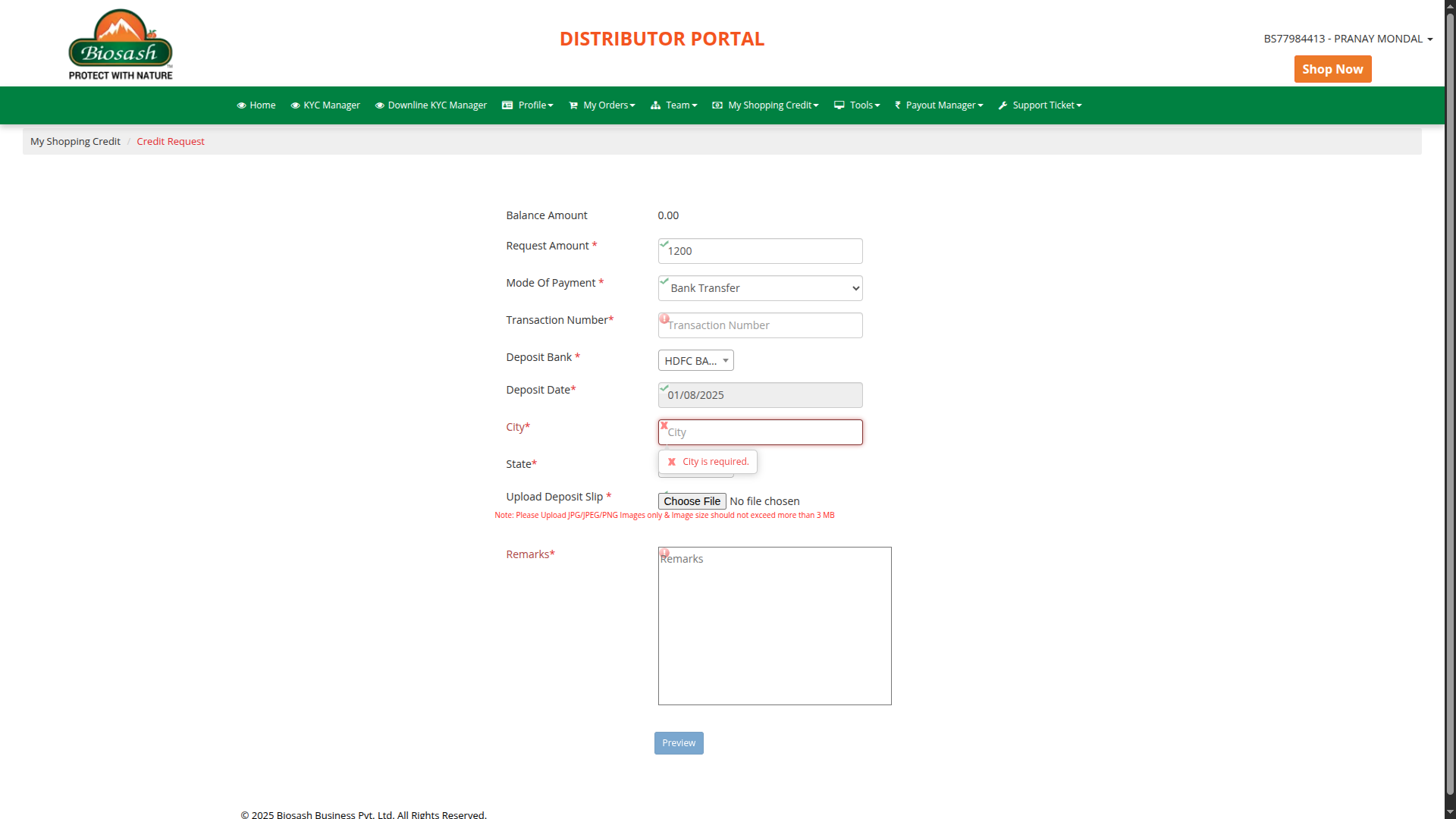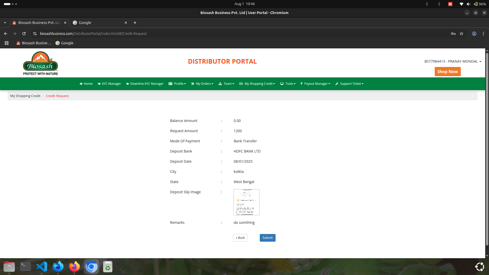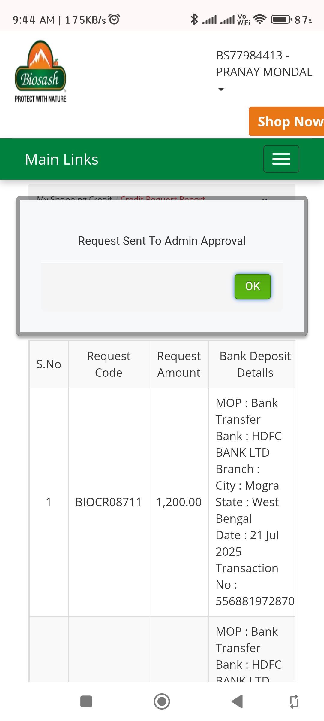 After Login. Click the "My Shopping Credit" option, and then a list appears. After opening the list, click "Credit Request" Option.